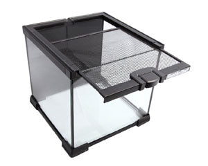 The Mini-T2 features raised feet to allow placement of a heat mat and enable the enclosures to be stacked. The superfine steel mesh lid provides added security and ventilation.