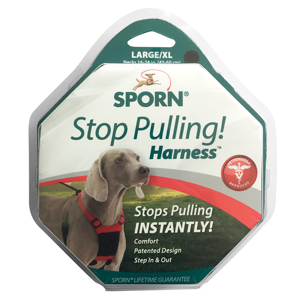 The Sporn Mesh Dog Harness fits like a glove and is designed to curb moderate to heavy leash pullers. Made for style, comfort and control, this harness features an elasticized mesh chest piece that moves with your dog. It’s designed to humanely control any size dog without choking, and the one-piece harness is easy to put on and take off. The padded restraint sleeves offer extra comfort under the front legs.